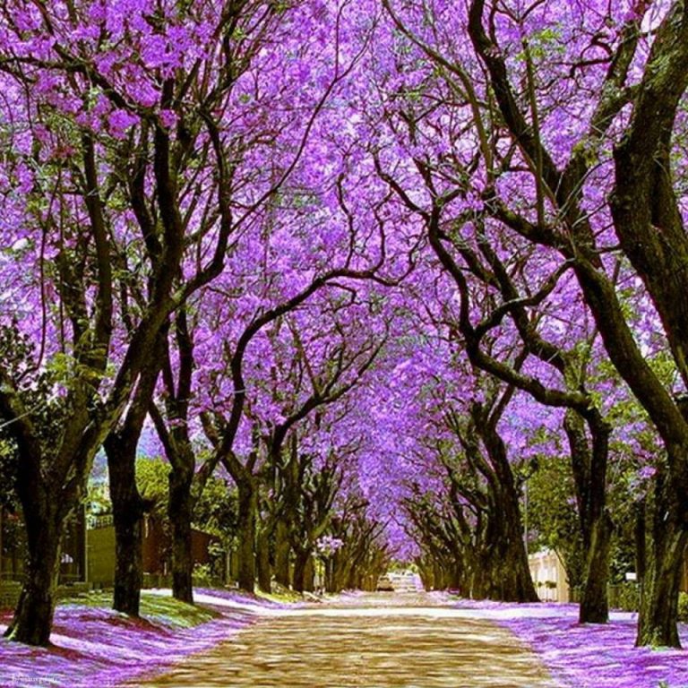 שדרת סיגלון עלי מימוסה (גקרנדה) בפריחה מרהיבה