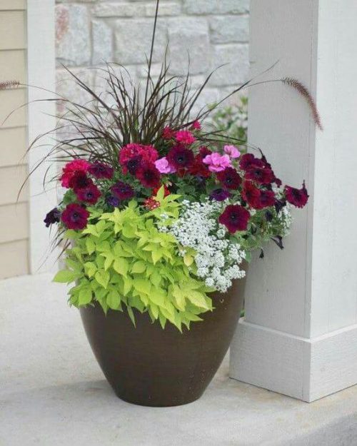 עציץ לשמש מלאה עד חצי יום שמש עוד בעציץ: וינקה גדולה מגוונת, פטוניות