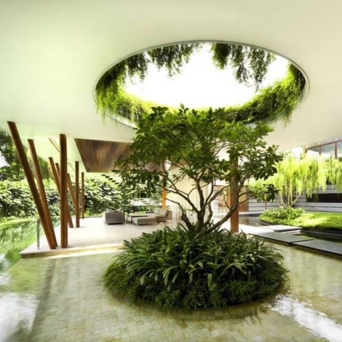 אלמנטי מים,מזרקות,ג'טים, הצללה משולבת צמחיה, הצללה בשילוב צמחיה, גינון אנכי וציורי קיר, צמחיה על קירות