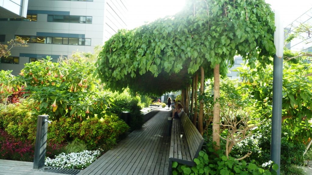שדרות ושבילים להולכי רגל, הצללה בשילוב צמחיה, הצללה משולבת צמחיה, שיח מעוצב על גזע