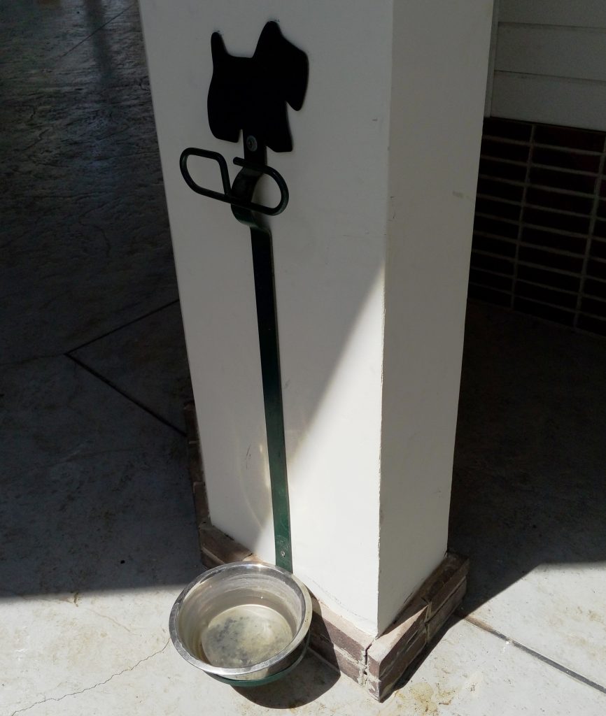גינה מתוכננת היטב: עם מצע חצץ וברזיית שוקת, גדר גבוהה ושער כפול, ספסלי ישיבה למלווים רחוקים מהגדר ומוצלים, פח אשפה סגור מרוחק מפינת הישיבה, שילט ברור ומתקן שקיות לאיסוף גללים.