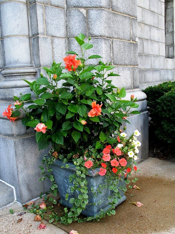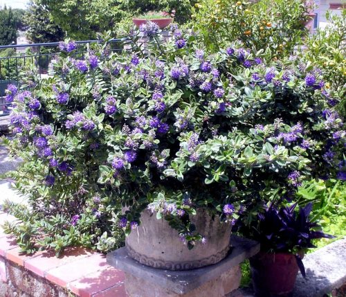 עציץ לשמש מלאה עד חצי יום שמש עוד בעציץ: וינקה גדולה מגוונת, פטוניות