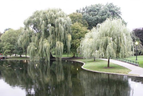 ערבות בוכיות על הגדה -קומפוזיציה של עצים עם צבעי עלווה בגוונים שונים של ירוק
