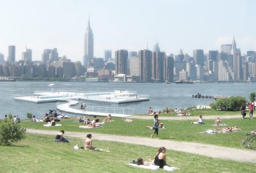 משחקי רחוב לא רק לקטנים - מימון המונים של חוף רחצה בהדסון ניו יורק. public swimming pool floating in the Hudson River- crowd founding