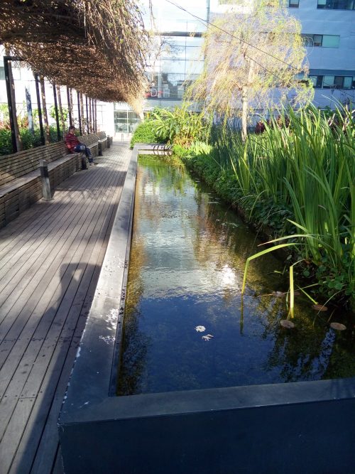 גן מעבר, בריכות ,תעלות ומפלים, גני כיס, צמחי גדה ומים