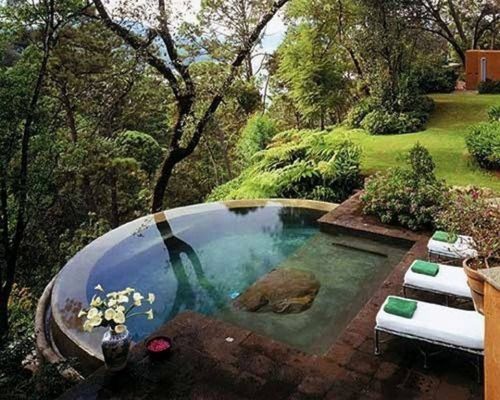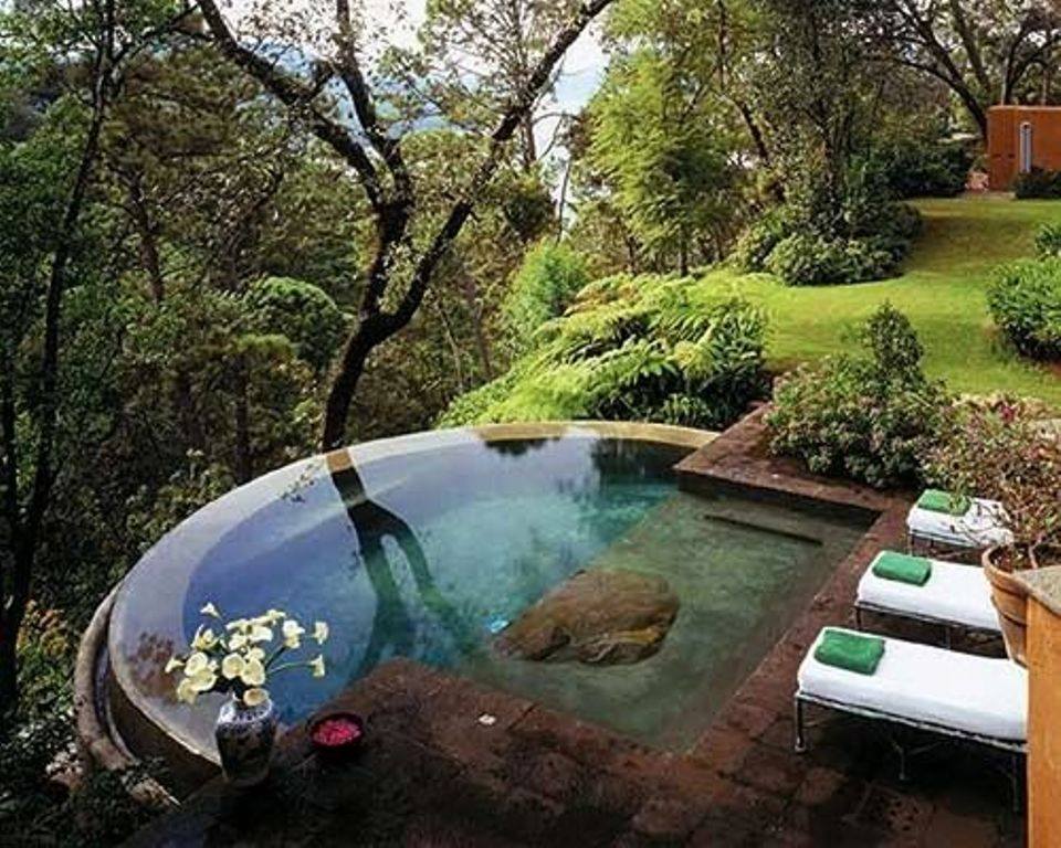 בריכת שחיה וספא, פינות ישיבה ואוכל בגינה, מנוחה שיזוף