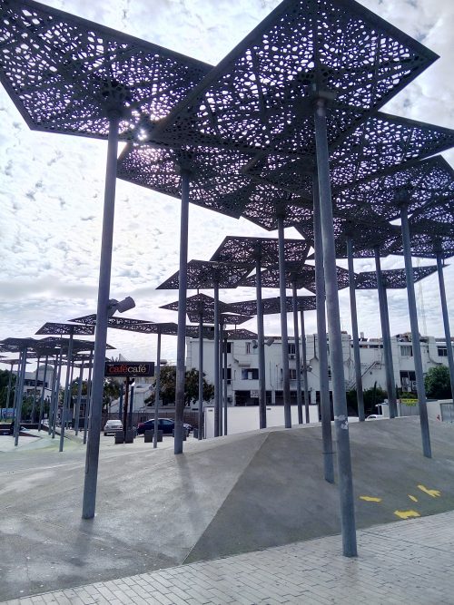 כיכרות ורחבות מרוצפות, ספסלי רחוב, הצללה ופרגולות, הצללה משולבת צמחיה