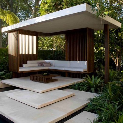 outdoor pergola with laser cut feature roof panels