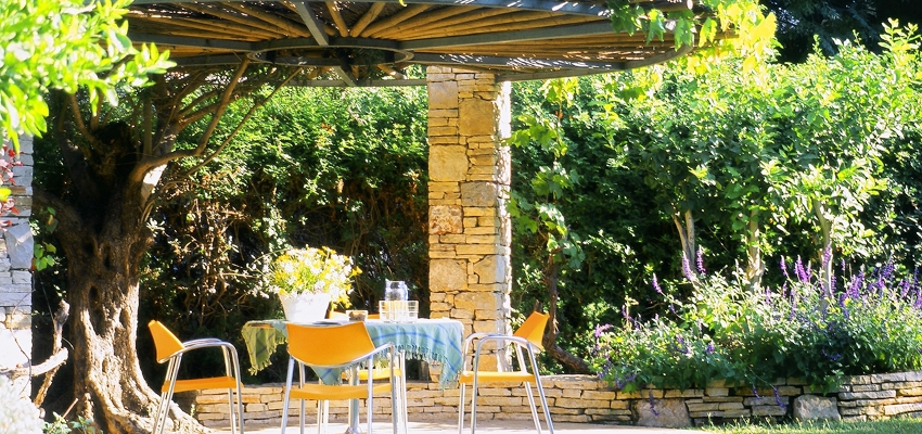 גינות מגוננות, פינות ישיבה ואוכל בגינה, הצללה ופרגולות לגינה