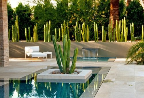 בריכת שחיה וספא, גינות אורבניות, מנוחה שיזוף, ערוגות סוקולנטים וקקטוסים, מודרני, גינה חסכנית במים