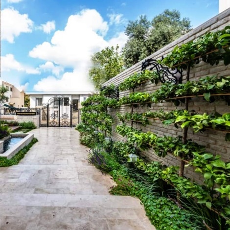 אספלייר, גדר חיה גזומה - ירוק עד, גינות אורבניות, מודרני