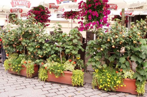 עציץ לשמש מלאה עד חצי יום שמש עוד בעציץ: וינקה גדולה מגוונת, פטוניות