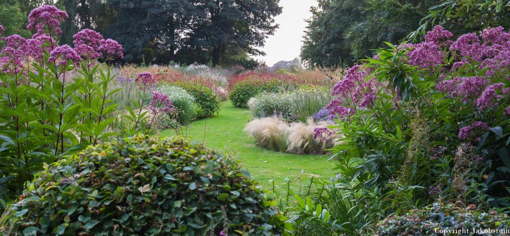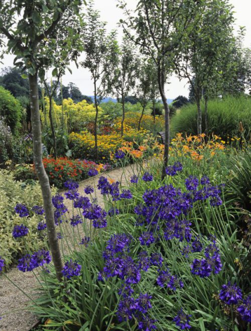 Agapanthus, Hemerocallis and Rudbeckia, Losley House garden אגפנתוס , המרוקליס, מטה זהב קנדי, מיסקנתוס, רודבקיה, מרווה ועוד