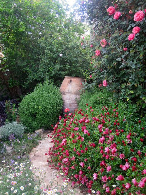 סיגנונות גינון, גינון בערוגות, ערוגות סוקולנטים וקקטוסים, ערוגות עשבוניים ודגניים, גינה חסכנית במים, צמחיה מלווה שביל