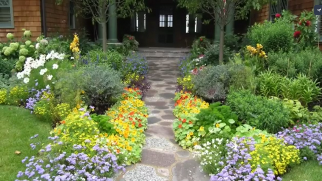 גינות מגוננות, ערוגות עשבוניים ודגניים, קלאסי, צמחיה מלווה שביל