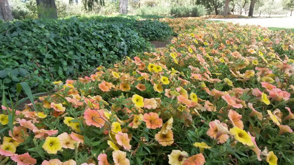 מקור: Flower beds in park Kolomenskoye (Moscow). Bed from petunia and carex.