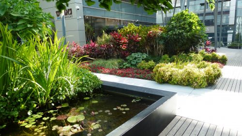 בריכות ,תעלות ומפלים, ערוגות עשבוניים ודגניים, ערוגות ירוקי עד