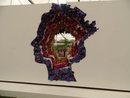 עיצוב בפרחים תלת מימדי של פרופיל מלכת אנגליה