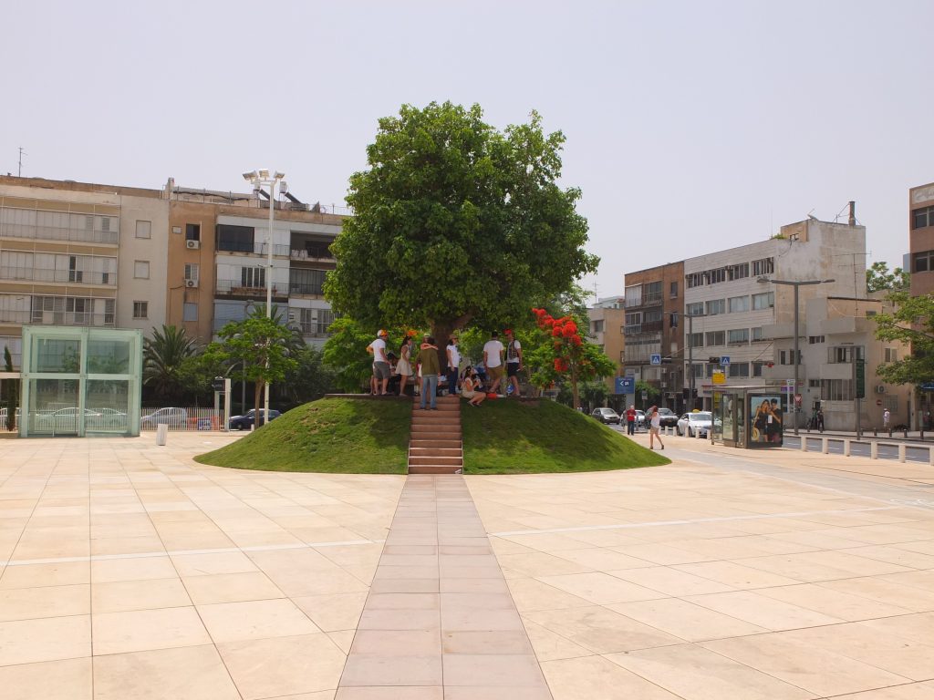 תלולית עץ השיקמה בכיכר הבימה בתל אביב