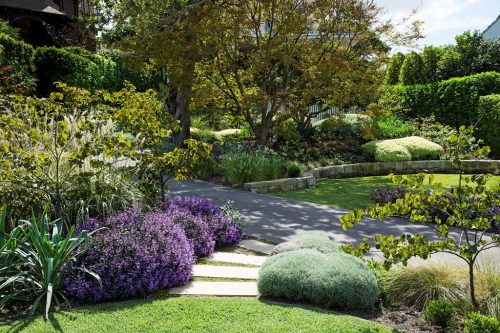 אבני דילוג לגינה, גינות מגוננות, שבילי אבני דילוג, ריצוף לגינה, ערוגות עשבוניים ודגניים, קלאסי, כפרי, צמחיה מלווה שביל