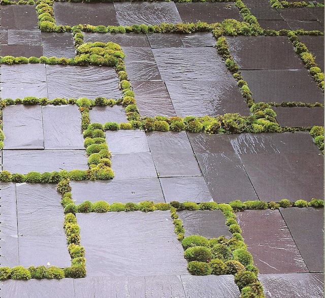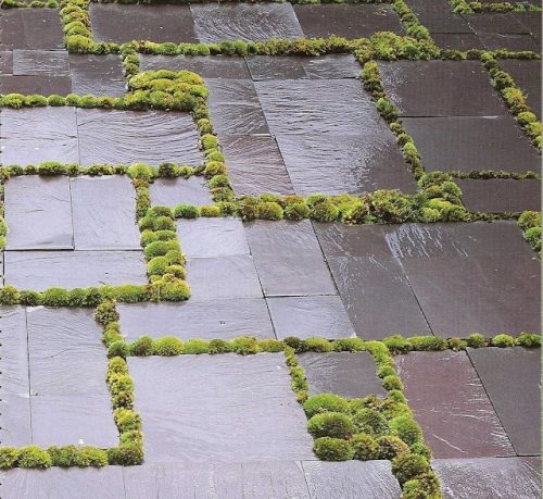 ריצוף אבן מנוסרת / מעובדת, אבנים משתלבות ואריחי חוץ, ריצוף משולב צמחיה, אבני דשא