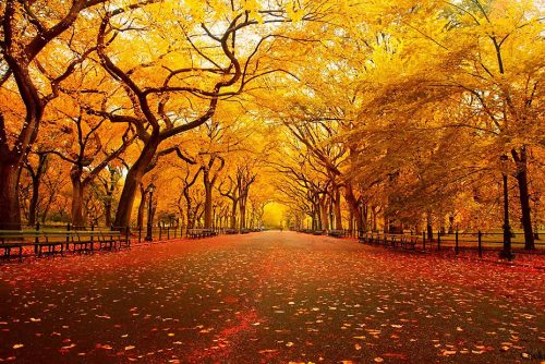 שביל מקורה בגן החממה בסנטרל פארק, ניו יורק. קיסוס החורש מטפס על גזעי העצים ומכסה את האדמה
