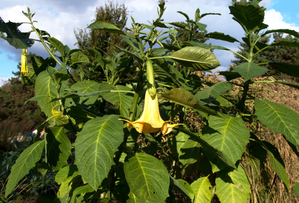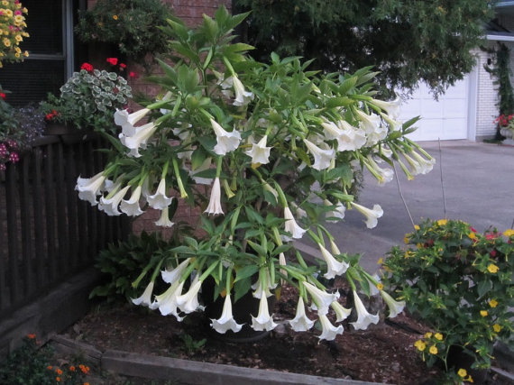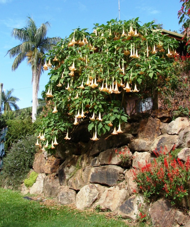 עץ קטן שיח גדול אוורירי ויפה. רעיל ביותר בכל חלקי הצמח. בעל צורה סוככנית קצת ושמוטה כלפי מטה בשל הפרחים הגדולים והריחניים המשתלשלים כלפי הקרקע. העלים גדולים ושעירים בצבע ירוק בהיר. הפריחה ארוכה ביותר במשך כל האביב קיץ וסתיו כ 8 חודשים. פרחים ענקיים בצורת חצוצרה או פעמונים גדולים התלויים על הצמח כלפי מטה. בצבעים של לבן צהוב חם או ורוד אדמדם. הזן הצהוב ריחני מאד בלילה. מעדיף אזורים חמים אך יגדל גם באזורים הקרים. שם יראה פחות טוב בחורף ואף ישיר קצת את עליו אבל יתחדש באביב. צמח המושך את העין מאד. חצי צל ושמש מלאה. זקוק להשקיה סדירה.