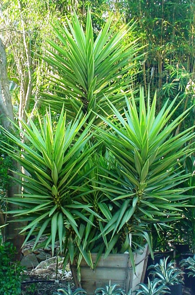 צמח שושנת סוקולנטי ירוק עד. עם הזמן עולה על גזע ( מתקרח בבסיס ובחלקים התחתונים ) והופך להיות דמוי דקל. מרובה גזעים ואפשר עם גיזום ליצור ממנו צמח פיסולי יפה. העלים דמויי חרב מסתיימים בקוץ נוקשה מאד ומסוכן. ננעץ בקלות בגוף ומכאיב זמן רב אחרי הדקירה. לכן מומלץ לשתול הרחק מילדים. בתחילת הקיץ במשך כחודש – חודשיים פורח בראש כל ענף במכבד זקוף של פרחים דמויי פעמון בצבע לבן. ריחם חלש אך אינו נעים. הפרי מופיע בקיץ אינו יפה אך גם אינו מכוער. צמח עמיד וחזק גם לקו 1 של חוף ים. מתאים לשמש מלאה וחסכני במים. מתאים לכל אזורי הארץ.