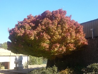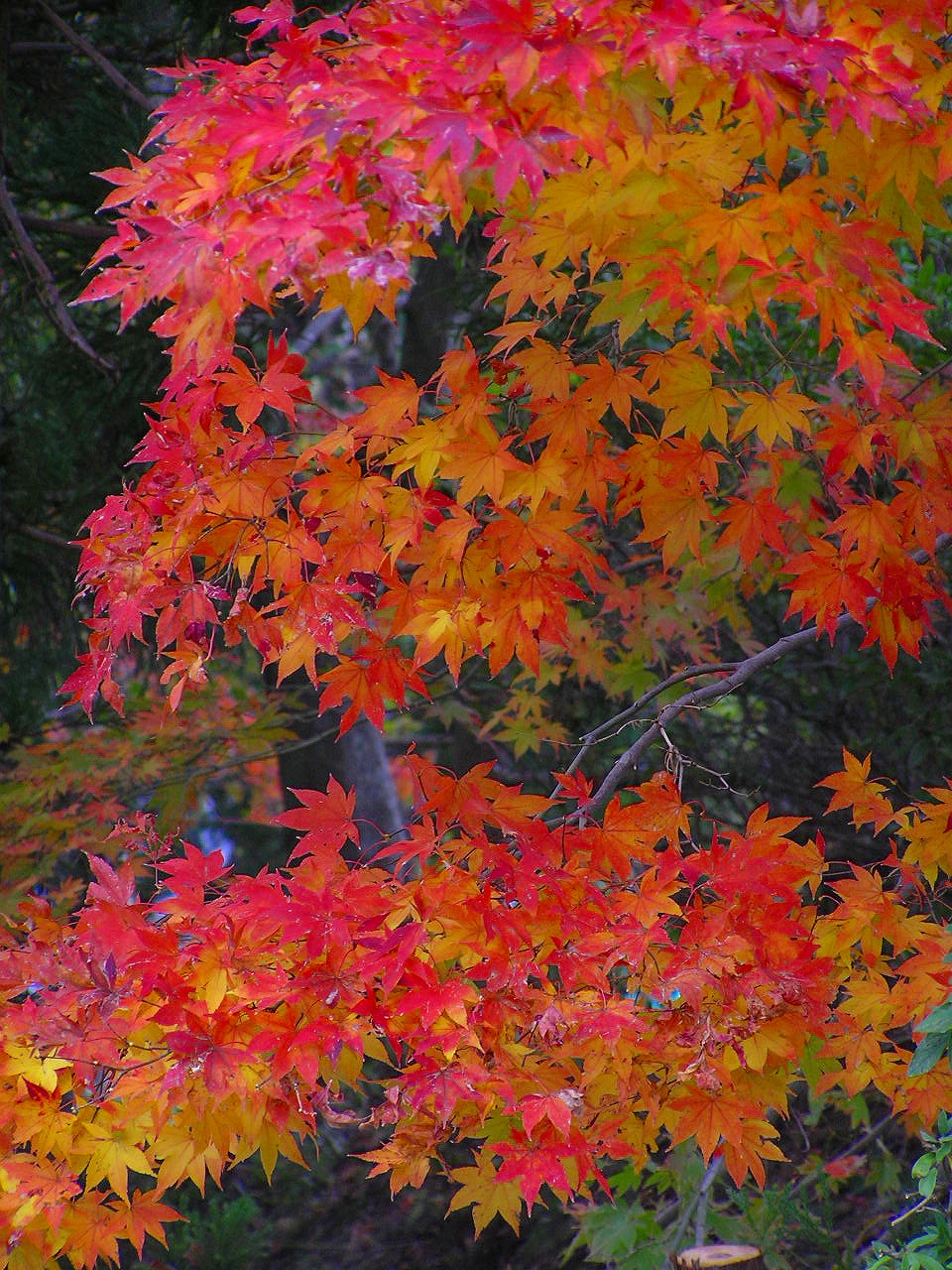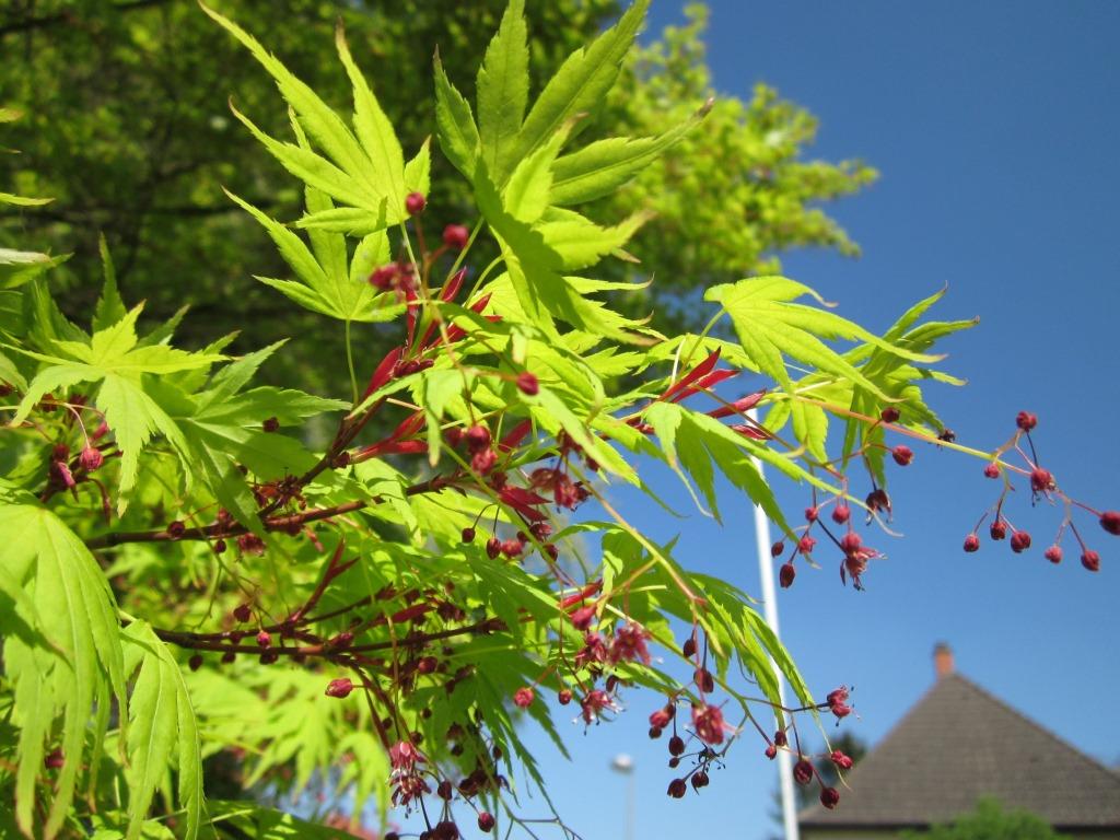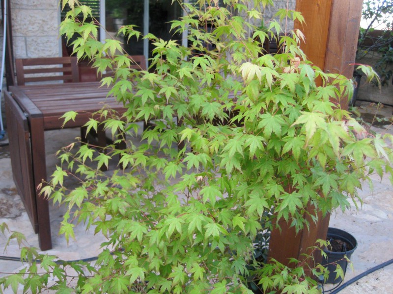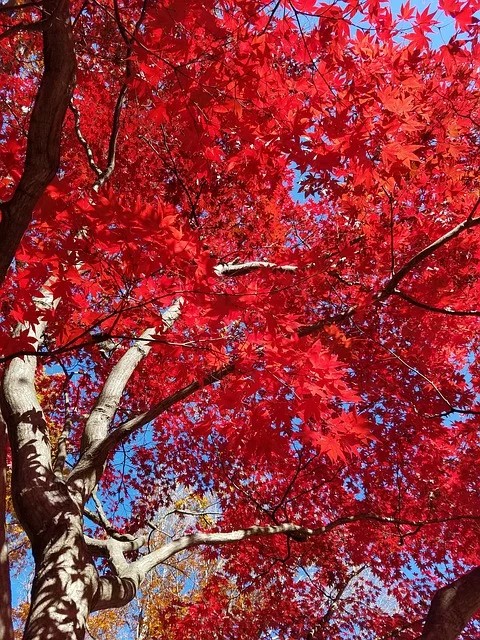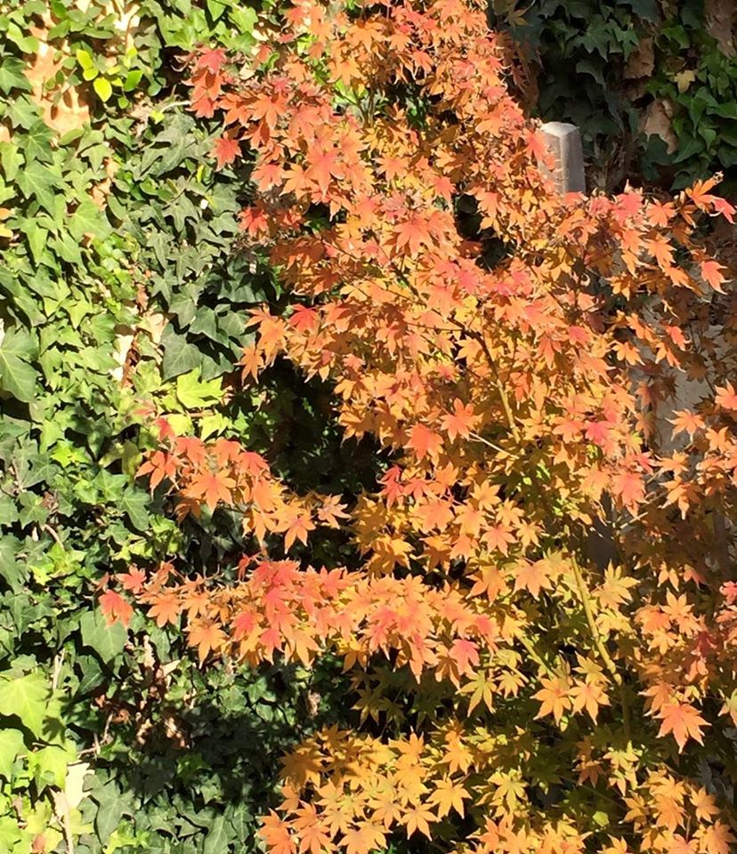 צבעי שלכת מרהיבים, עלים גזורים ויפים בצבע ירוק בהיר, עץ פיסולי