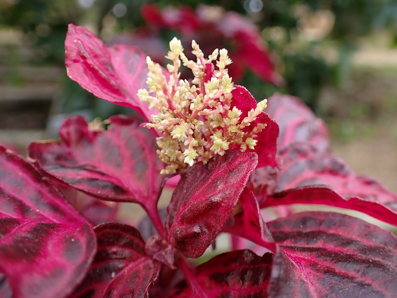 בן שיח עשבוני קטן ירוק-עד בעל עלים מעוגלים דמויי כליה רכים בצבע אדום או ארגמן ובולט לעיין או ירוק או מגוון בירוק צהוב לבן ואדום. העורקים בצבע אדום בהיר יותר ובולט. אוהב צל או חצי צל ולכן חשוב במתן צבע במקום בו אין פרחים. הפריחה בקיץ ביעילות נמוכה בצבע קרם אותה כדאי להוריד . סובל מאד מקור וקרה ולכן עלול להתייבש ולמות בחורף קר. זקוק לחידוש בסוף החורף ,קצת רובץ. באזורים הקרים רצוי לשתלו במקומות מאד מוגנים. זקוק להשקיה בינונית סדירה. בבית זקוק לתנאי ההארה הגבוהים ביותר. מתאים לאזורי הארץ החופשיים מקור וקרה. זקוק להשקיה בינונית סדירה.