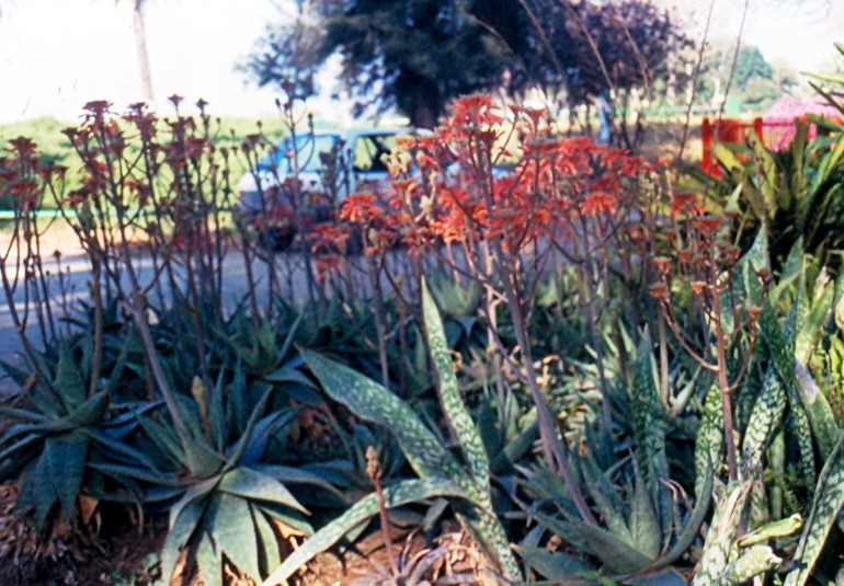 האַלְוַוי המפוספס הוא סוקולנט בעל שושנת עלים רחבים אפרפרים. קצת קוצניים בשוליהם. בחורף פורח במשך כחודשיים שלושה בתפרחות כתומות. עמוד התפרחת עולה לגובה ואז מתפצל ויוצר משטח של שבלי פריחה. יעילות פריחה גבוהה. מתאים לכל אזורי הארץ בשמש מלאה וחסכוני במים. הסוג אלוי פורח בחורף וכאן חשיבותו.