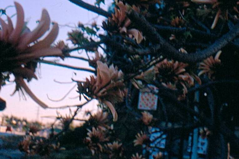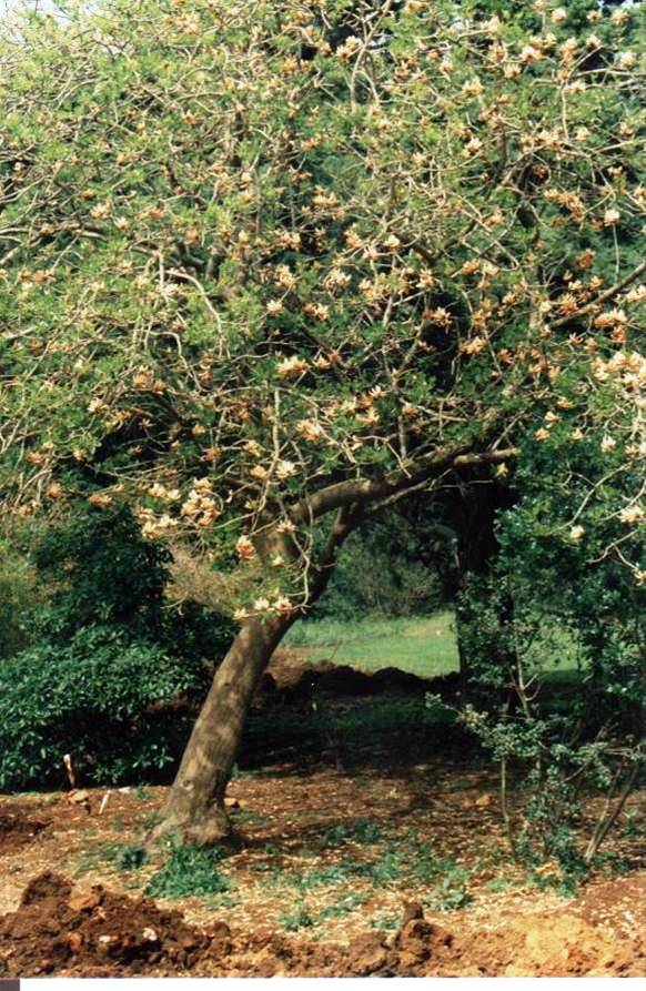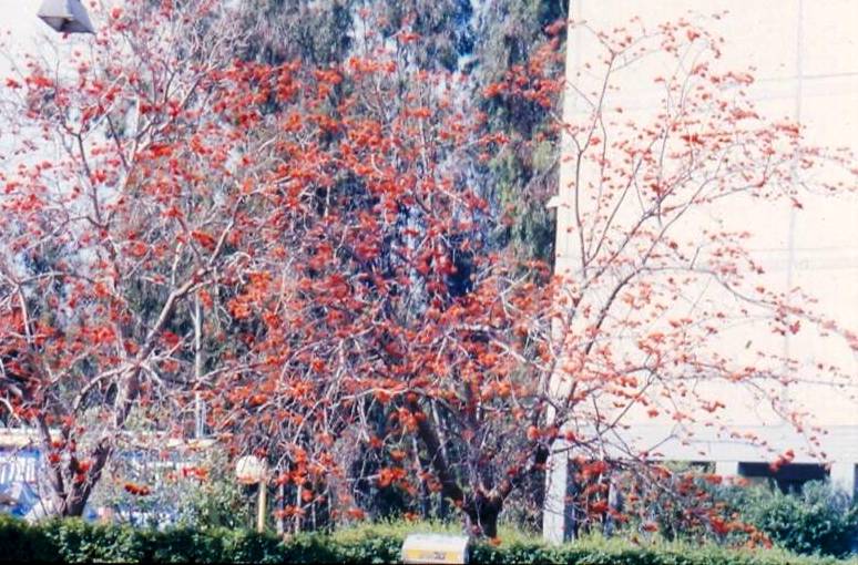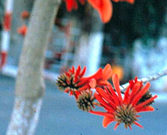 עץ נשיר בגודל בינוני, צלליתו עגולה. פורח באשכולות פרחים כתומים או אדומים או בגוון אפרסק, הפריחה באביב לפני הלבלוב בקצות ענפים של השנה שעברה. בולטים מאד על רקע הענפים הערומים. עלים ירוקים בצפיפות גבוהה בצורת לב עגול וקצה מחודד ומוארך בצבע ירוק חי. שלכת חורפית. מתאים לקרקעות כבדות ובינוניות. הפרי הוא תרמיל מוארך ובו זרעים עגלגלים אדומים מבריקים מנומרים בכתם שחור. יפים מאד ומבוקשים למחרוזות. הגזע בעל טקסטורה חלקה בצבע חום. מתאים לכל הארץ פרט להר וההר הגבוה. אינו זקוק להרבה מים. בעל גזע סוקולנטי קוצני .