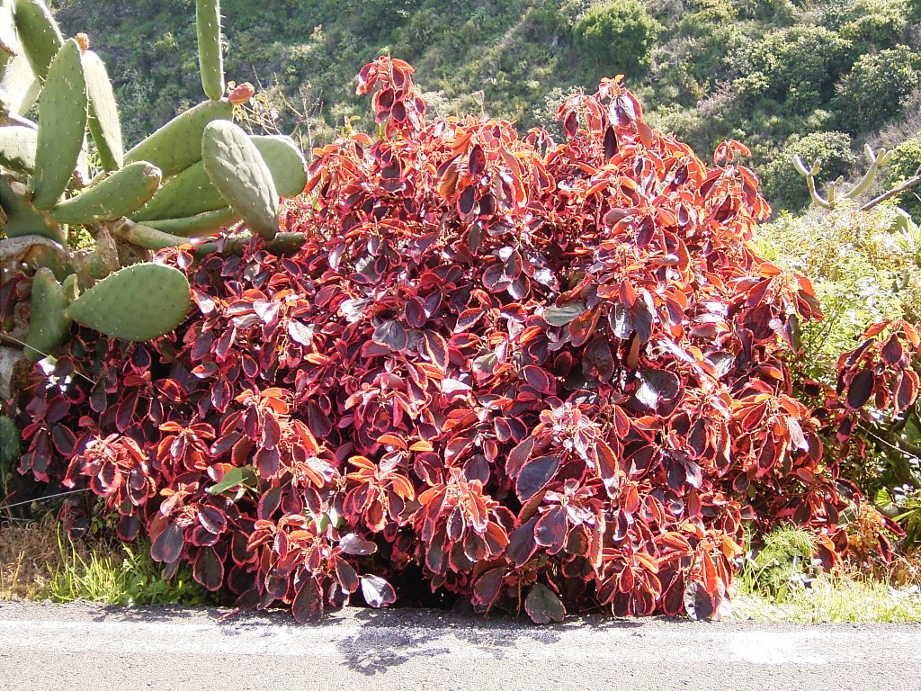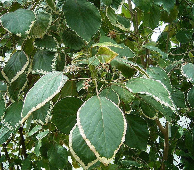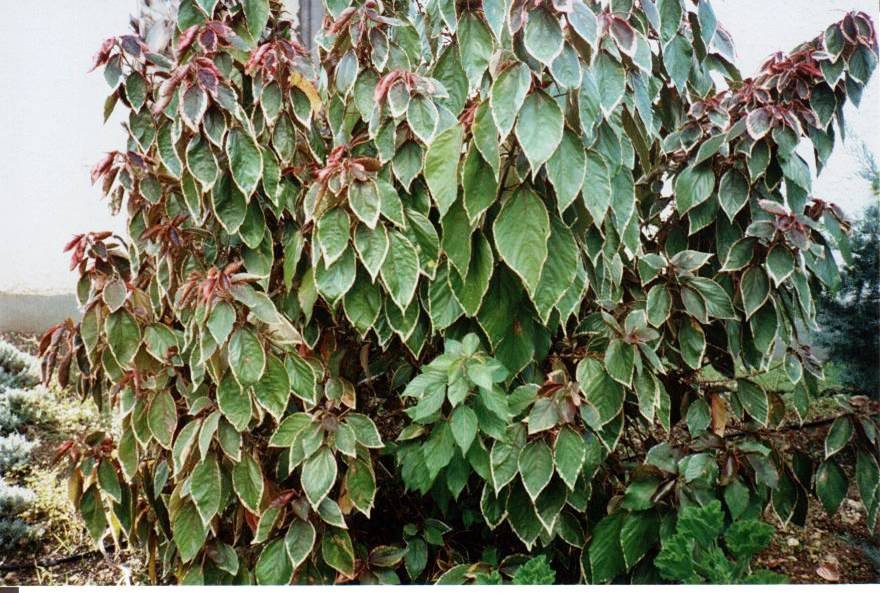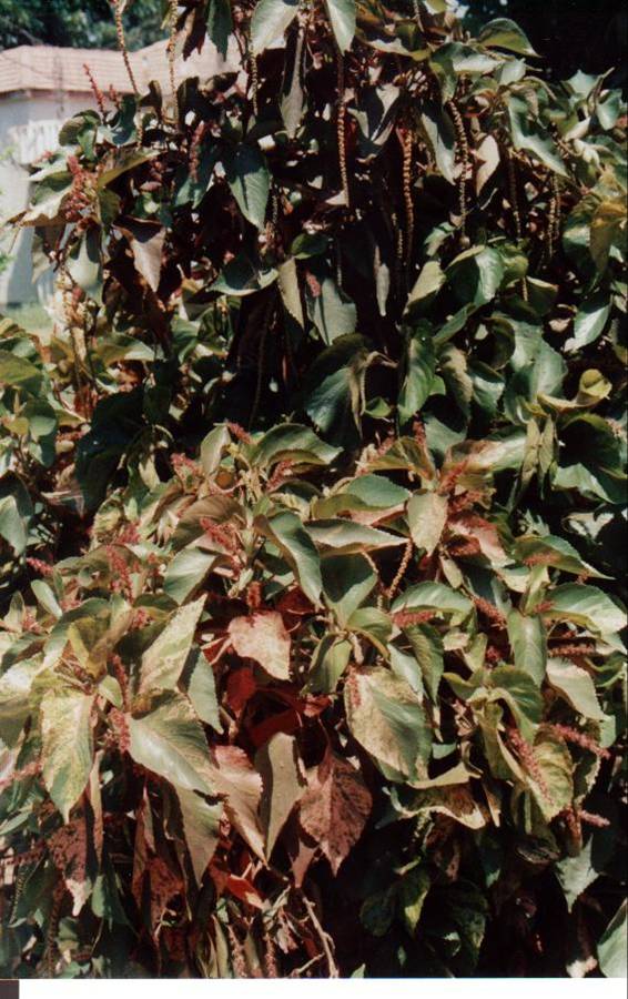 שיח נשיר מותנה אשר סובל מאד מקור וקרה . אם יש שלכת היא חורפית. שיח רחב וענף בסביבות 3 מ' גובה. בעל עלווה מגוונת בירוק ואדום ושולי עלה וורודים. העלים גדולים ורכים ביצתיים עם שפה משוננת. הפריחה חלה בקיץ ונראית כחוטים דקים אדומים המשתלשלים כלפי מטה. אינה קישוטית במיוחד מכיוון שנבלעת בצבעי העלים החזקים. צמח טרופי הסובל מקור וזקוק להשקיה סדירה ורבה והגנה מרוחות וקור. מאד בולט בגינה בצבעיו ויכול לשמש כגדר חיה . זקוק לשמש מלאה. ככל שיש יותר צל העלים נעשים ירוקים יותר.