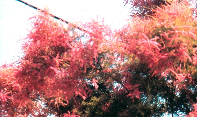 שיח גדול או עץ קטן נשיר מותנה פרוע בעל עלים קטנטנים ופריחה יפה ושופעת באביב המוקדם בצבע ורוד חזק ובולט. נחשב פליט תרבות בארץ. העלים אינם משמעותיים וגם כשהוא נשיר לא כל כך מבחינים. הצמח חזק מתאים לכל אזורי הארץ עמיד ליובש ומתאים גם לחוף הים. מדכא צמחים מתחתיו. גדל על כמה גזעים ואפשר לעצבו.