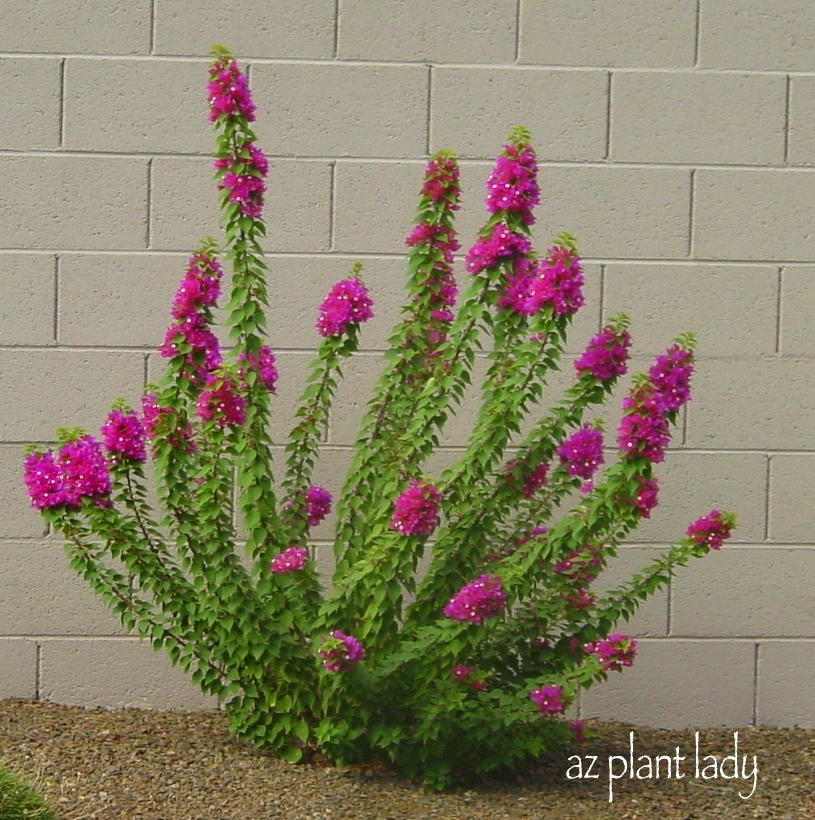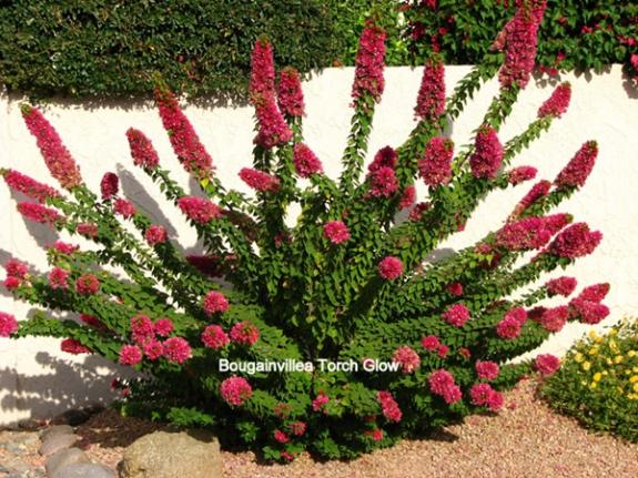 שיח ירוק עד ,בגודל בינוני 2-3 מ', קוצני. זן גנני של בוגנוילאה חלקה שאינו נשען. הענפים יוצאים ממרכז אחד בצורת קשתות לכל הכיוונים. הענפים מכוסים עלים קטנים וירוקים . לזן זה יש הרבה פחות קוצים מהבוגנוילאה החלקה או הנאה. יש גם זן מגוון עלים בירוק ולבן. הפריחה בצבע סגול-ורוד בלבד, מרוכזת בקצות הענפים כמו לפידים ולכן הכינוי Bougainvillea Torch Glow. כאשר הענפים מתארכים הם מתפתלים כמו נחשים ומתפצלים, פיסולי ביותר. משמש לרוב כצמח בודד,כצמח מוקד,כעץ קטן על גזע, במיכל,בערוגה פורחת. פריחה ממושכת מאוד מתחילת האביב ועד סוף הסתיו (כ 8 ח') , בשמש מלאה יפרח ביעילות גבוהה. הפרחים קטנים וצהבהבים ועלי החפה הם נותני הצבע,הם נשארים זמן ממושך יותר על הענף מיתר מיני הבוגנוילאה ולכן פחות מלכלכים את סביבת הצמח. עמיד מאוד וחסכוני במים. מין זה רגיש לקור ואינו מומלץ לאזור הר הגבוה. בחורף הצמח נראה פחות טוב אך מתאושש מהר באביב.