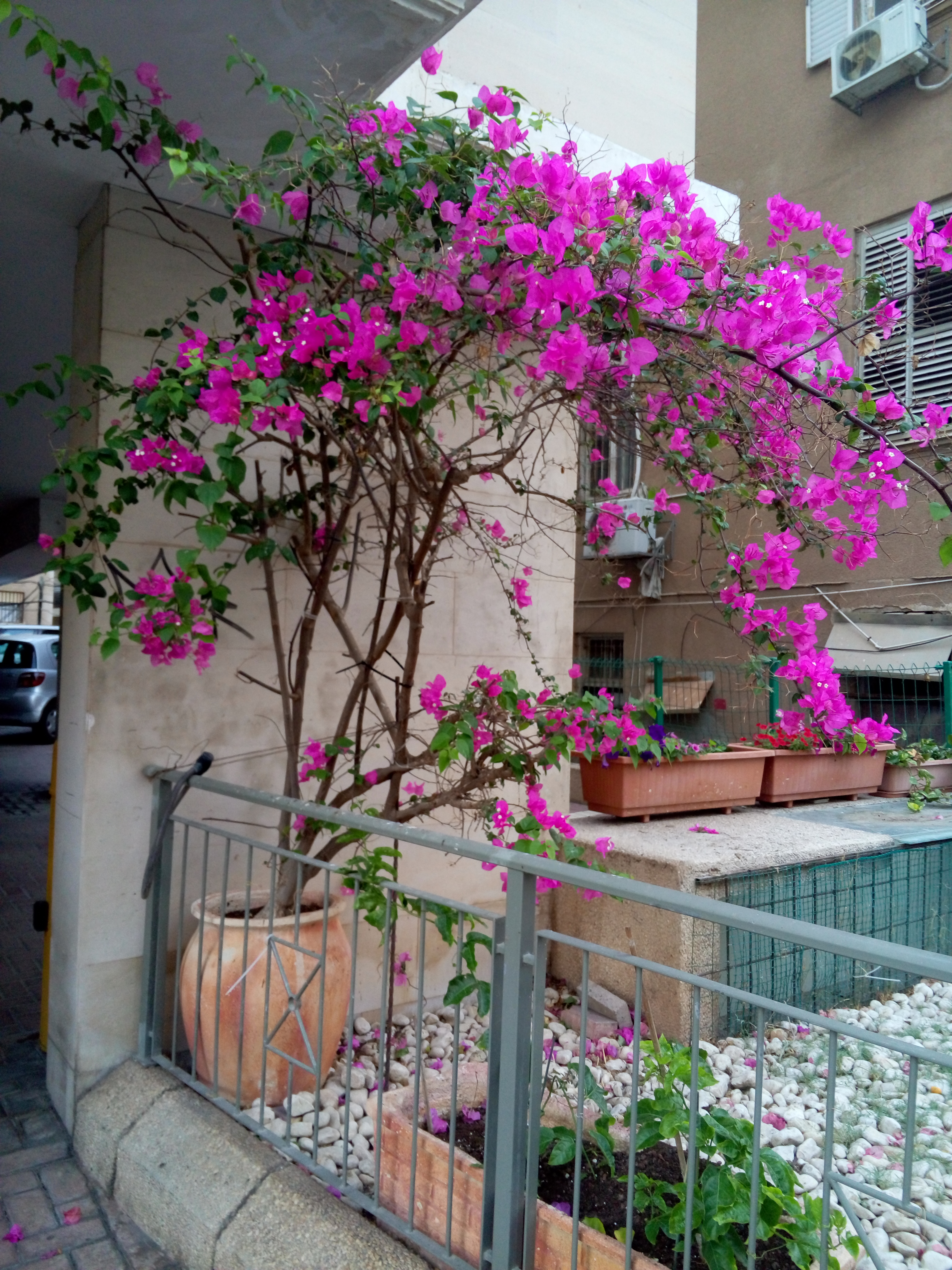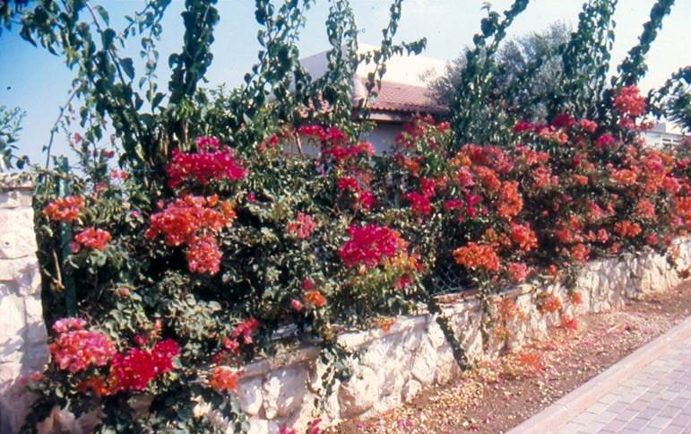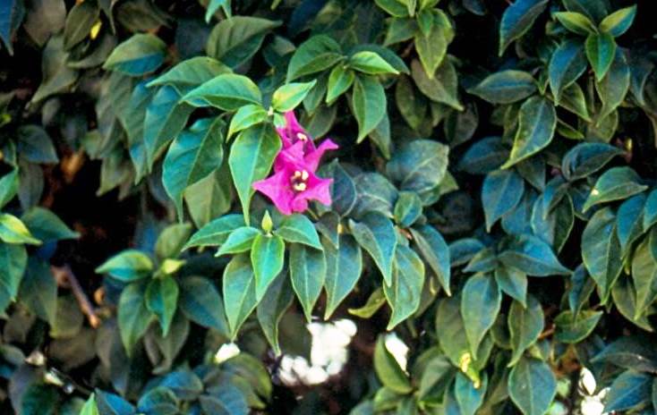 מטפס שיחי נשען, נשיר מותנה, שתלטן מאד וקוצני. נאחז על ידי ענפים משתרגים בסיוע הקוצים. ענפים שעירים ועבים והקוצים רבים וכפופים. בעל פריחה ממושכת מאוד בשלל צבעים: סגול,ארגמן,לבן,אפרסק,אדום-ורוד ועוד. יש זנים עם פרחים מלאים. הפרחים קטנים וצהבהבים ועלי החפה הם נותני הצבע, כשהם נושרים הם מלכלכים את סביבת המטפס. עמיד מאוד וחסכוני במים. מתאים לצידי דרכים, מין זה רגיש לקרה, נשיר בחורף באזורים קרים. פחות עמיד מהבוגנוילאה החלקה (פחות נושרת בחורף,יותר קוצנית ופורחת רק בצבע סגול) . לשמש מלאה.