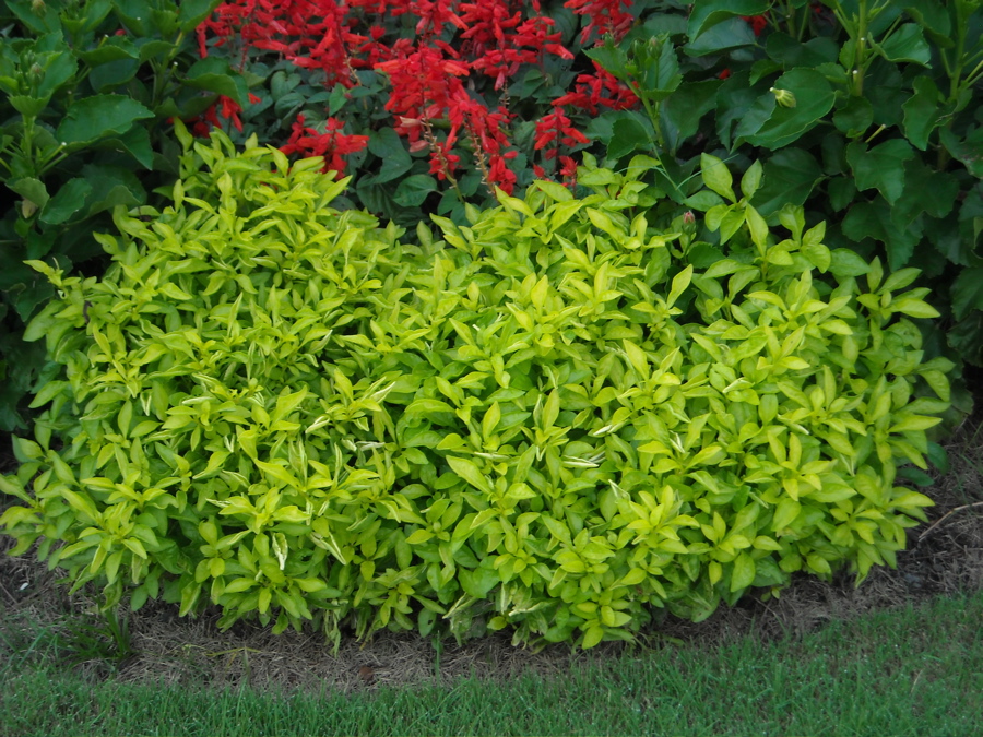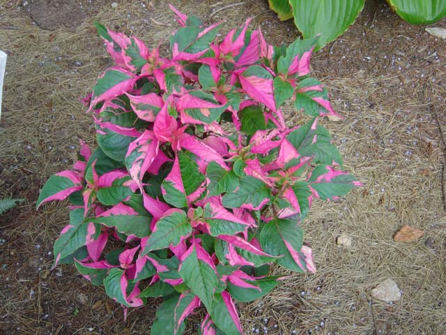בן שיח עשבוני ירוק-עד נמוך – עד 30-40 ס"מ. היופי שלו בעלים. קיימים זנים עם עלווה בצבע ירוק בהיר עם כתמים ורודים, עלים בצבע ירוק כהה , ועלים בצבע אחיד ירוק צהוב. השיח כריתי ומצוין לסימון שבילים, תוחם ערוגה, גיוון צבע בערוגה ולקדמת הערוגה. בארץ סובל מקור וקרה ולכן ניראה פחות טוב בחורף באזורים הקרים. מתחדש יפה באביב. הפריחה קיצית ואינה משמעותית כדאי לקטום אותה.