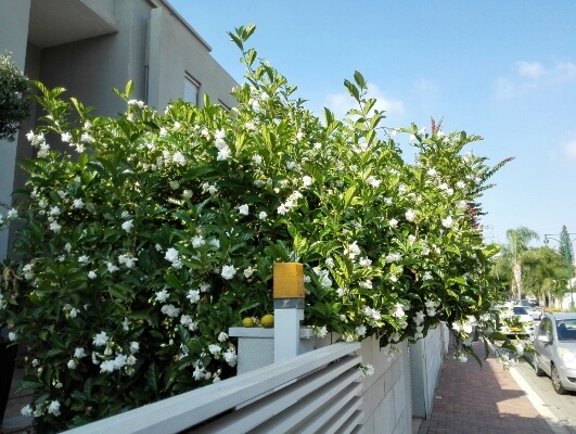 בעל עלים ואליפטיים גדולים ויפים ופרחים לבנים צחורים ויפים המפיצים ריח נעים בלילה במשך כל התקופה החמה