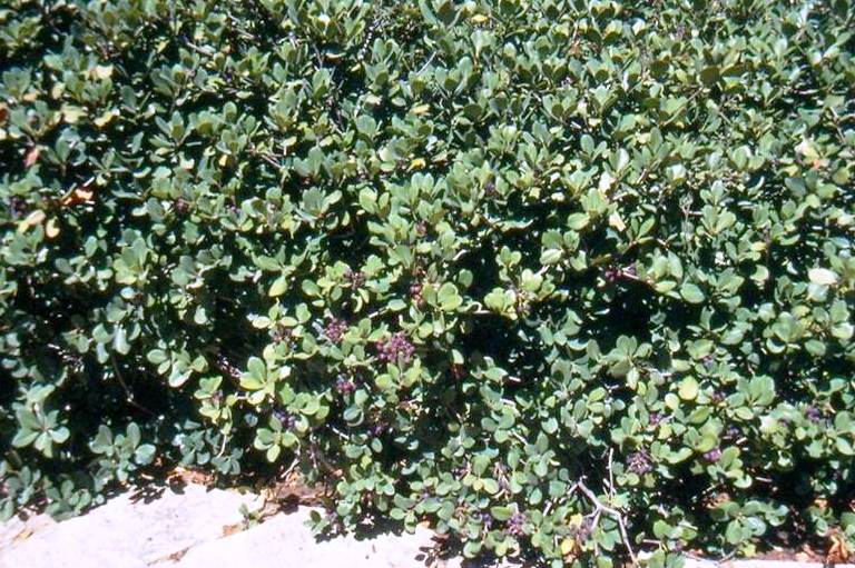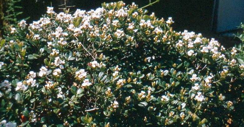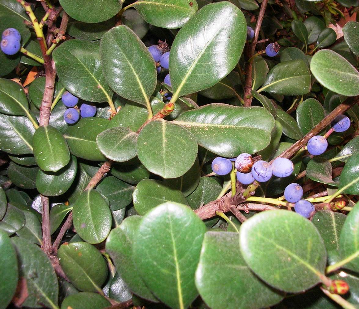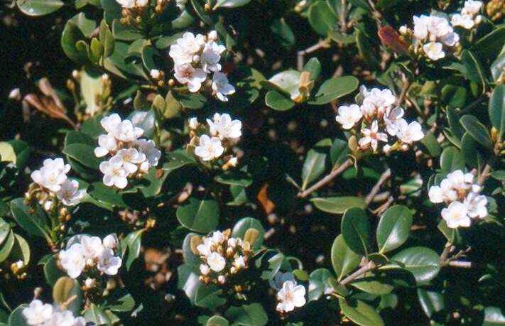 שיח כריתי בינוני צפוף עלוה ירוק עד . עלים מבריקים ירוקים כהים גילדניים בצורת ביצה מעוגלת. פריחה אביבית ריחנית ביותר בצבע לבן. פריחה קצרה כחודש. פרי יפה ענבה בצבע שחור סגול בחורף. צומח לאט . חזק עמיד ונוח לשימוש. קו 1 של חוף ים. נקי ממזיקים ומשמש כיסוי שטח גבוה מצוין. אינו דורש גיזומים אם נישתל במקום מתאים. מונע הצצת עשבים מתחתיו.