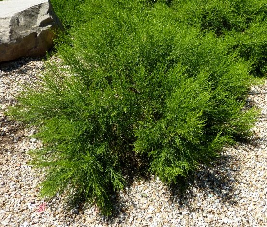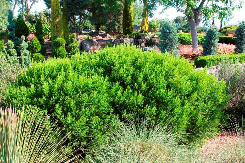 שיח ירוק-עד, בעל צימוח כריתי גבוה יחסית (1-1.2 מ') ועלים קטנים ודקים, דמויי מחט,צפופים מאוד , בצבע ירוק רענן כל השנה. שלוחותיו מתרחבות להיקף של כ2.5 מ', צפיפות צימוחו מונעת נביטה של עשבים בסביבתו. צמח סתגלן המתאים עצמו ועמיד למגוון אזורי אקלים ,במיוחד חמים ויבשים כמו הערבה והנגב . הצמח נהנה מקרירות, יגדל היטב באזורי ההר הגבוה והוא עמיד לקרה. חסכני מאוד במים- לאחר התבססותו, יכול להסתדר בלי תוספת השקיה כלל. הפריחה בסתיו ללא חשיבות גננית. אין חובה לגזום אותו , אבל אם צריך מספיק 1-2 גיזומים בשנה אך לא בחודשי הקיץ החמים. מתאים מאוד לגינון ציבורי, לגינון נמוך באיי תנועה, לייצוב מדרונות , בצדי דרכים, במסלעה גדולה,כיסוי שטח ירוק בגובה בינוני . מתאים לכל סוגי הקרקעות בכל הארץ (כולל קרקעות דלות) כל עוד הם מנוקזות. בגינה הביתית יכול לקבל השקיה מוגברת ולכן חשוב אדמה מנוקזת היטב.לשמש מלאה.