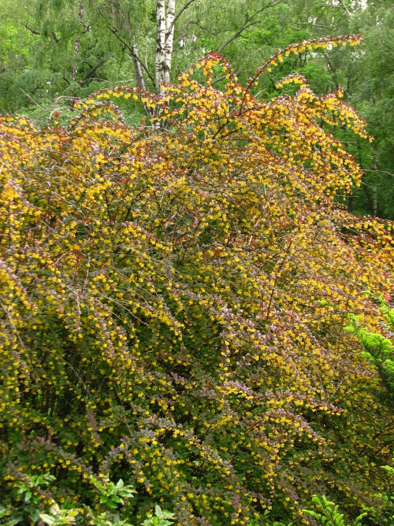 שיח בעל ענפים קשתיים קישוטיים וארוכים הנראים כיוצאים ממקום אחד. נשיר חורף. הצמח בעל עלים קטנים ביצתיים בצבע ירוק – בורדו כהה בעל צבעי לבלוב ושלכת אדומים חזקים ויפים. מתחת לכל שלשת עלים יש קוץ חזק וארוך. הפריחה באביב בצבע צהוב בולטת מאד ונמשכת כחודש וחצי. הפירות בסתיו . ענבות מאורכות אדומות קישוטיות גם כן. הצמח אוהב קור ומתאים מאד לאזורים הקרים וקרירים בארץ. עמיד ליובש ועמיד גם לשרב. צמח חזק שיפה לשלב עם צמחי מחט ירוקים.
