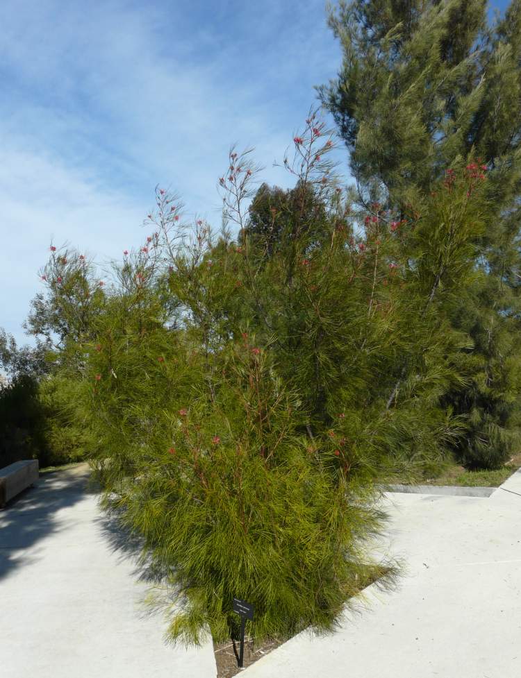 שיח גדול עץ קטן ירוק עד בעל עלים דמויי מחט מאורכים בצבע ירוק כהה. הפריחה בוורוד  בחורף אביב ממושכת (5 חודשים) . הפרחים גדולים מאד ובולטים לעין. מהגדולים בפירחי הגרוילאות. זקוק לשמש מלאה וחצי צל. מתאים לכל אזורי הארץ. עמיד ליובש וסובל מעודף השקיה ודישון. זקוק לאדמות מנוקזות היטב. שתילה וגיזומים בחורף. בקיץ רצוי לתת לו מנוחה.