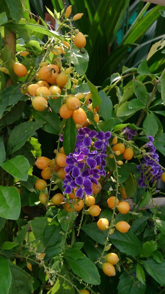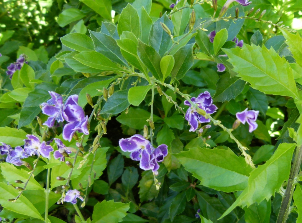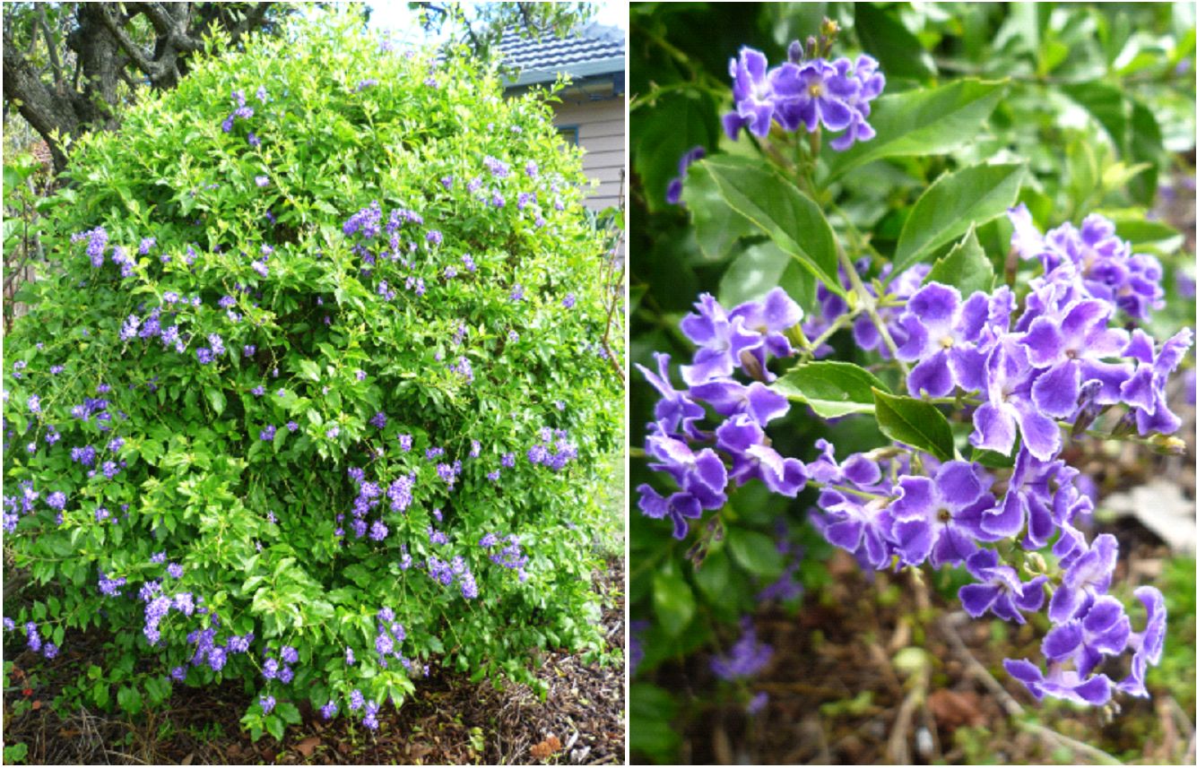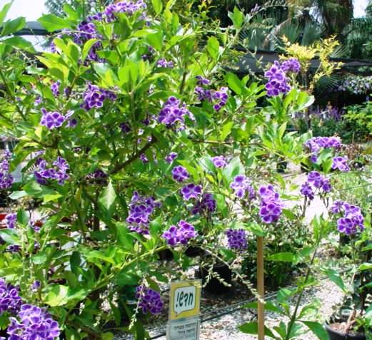 שיח נשיר מותנה גדול בעל ענפים קשתיים ארוכים. אפשר לעצבו כעץ קטן ואז יכול להגיע גם ל 8 מ' גובה. עלים רכים גדולים יחסית בירוק בהיר חי. משוננים קצת. הפריחה בסגול באשכולות שמוטים כלפי מטה כמעט כל השנה. הפרחים גדולים יחסית עם שוליים לבנים המדגישים אותם מאד ועושים את יעילות הפריחה לגבוהה. בסוף הקיץ ובסתיו מופיעים אשכולות של בתי גלעין עגולים כתומים קישוטיים ביותר. צמח רגיש מאד לקור וקרה. מצוין כעץ קטן וכן כגדר חיה פורמלית או חופשית. חצי צל ושמש מלאה. השקיה סדירה.