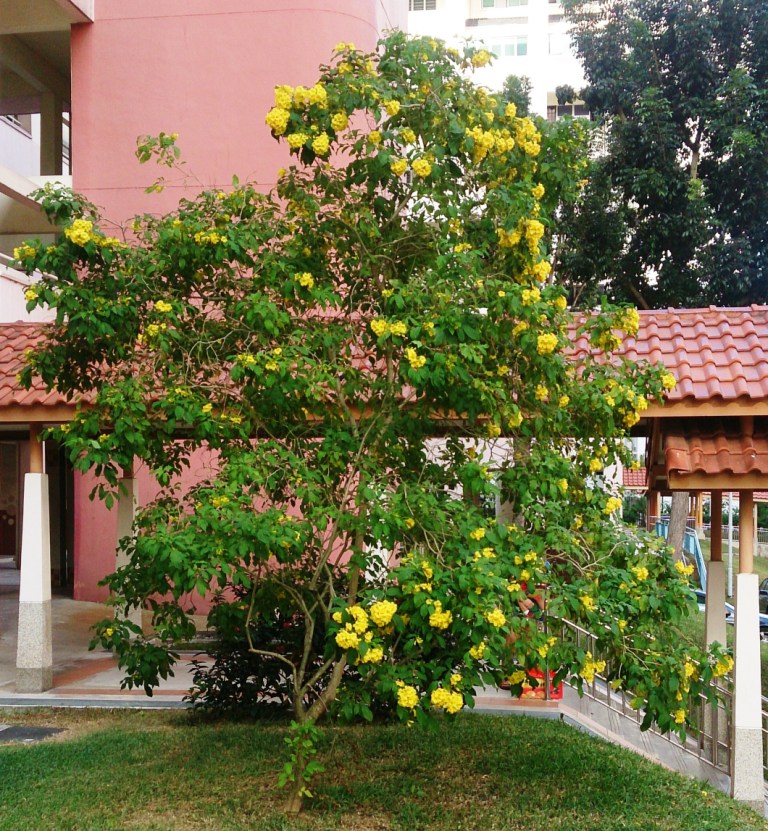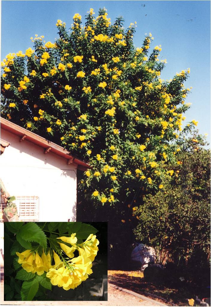 עץ קטן או שיח גדול, עשוי להגיע עד לגובה כ 8 מ' ,שיח ענף וגדול ,נשיר מותנה- רק בחורף מאד קר. בעל צימוח זקוף דליל. העלים בירוק חי מנוצים ויפים. שפע של פריחה בצבע צהוב לימון זוהר, באביב ,קיץ וסתיו (כ 8 חודשים בשנה) .באזורים חמים פריחה עשירה רוב השנה .הפרחים במכבדים גדולים. פרחים דמויי צינור או משפך . הפרי הלקט דמוי תרמיל צומח בשפע ויוצר נשר יבש. רגיש קצת לקור. הפריחה נותנת צבע בגינה ,יכול להיות עץ קטן קישוטי. אם נישתל מעל משטח יש לצפות להרבה נשר של פרחים ופירות.