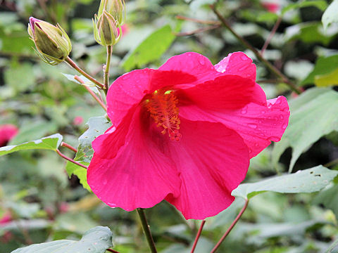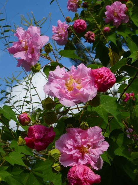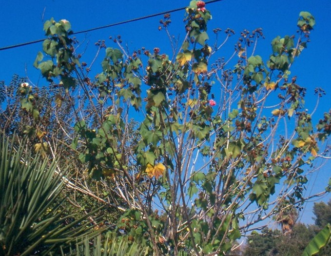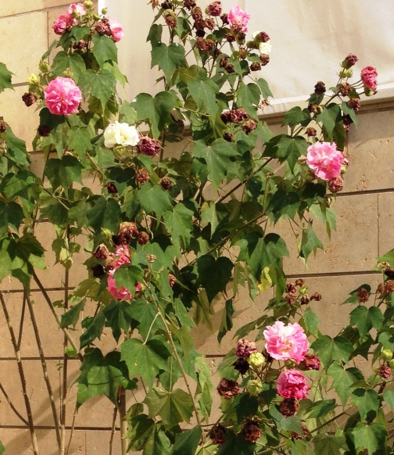 עץ קטן או שיח צר וגבוה. יכול להגיע לגובה של כ5-6 מ' אך לרוב יופיע כשיח עד גובה 1.8 כך הפריחה רבה. נשיר חורף, פריחה שופעת ,ממושכת ובולטת מסוף האביב ועד סוף בסתיו. הפרחים לבנים בפתיחתם ונעשים ורודים ולבסוף אדומים בערוב היום. הפרח פורח במשך כיום וחצי ונושר רק לאחר מספר ימים,לכן תמיד קיימת על השיח תערובת של צבעים. יש פרחים מלאים ויש ריקים .העלים גדולים פשוטים דמויי לב עם 5 אונות משולשות מחודדות. צידם העליון שעיר ושפתם קצת משוננת. צידם התחתון לביד. צבעם ירוק בהיר. ניתן לעצבו על גזע בודד או מספר גזעים. כשיח בודד יראה יותר פריחה ,מומלץ להבליטו על רקע קיר . ניתן לשתול במיכל גדול. צריך השקיה מרובה.