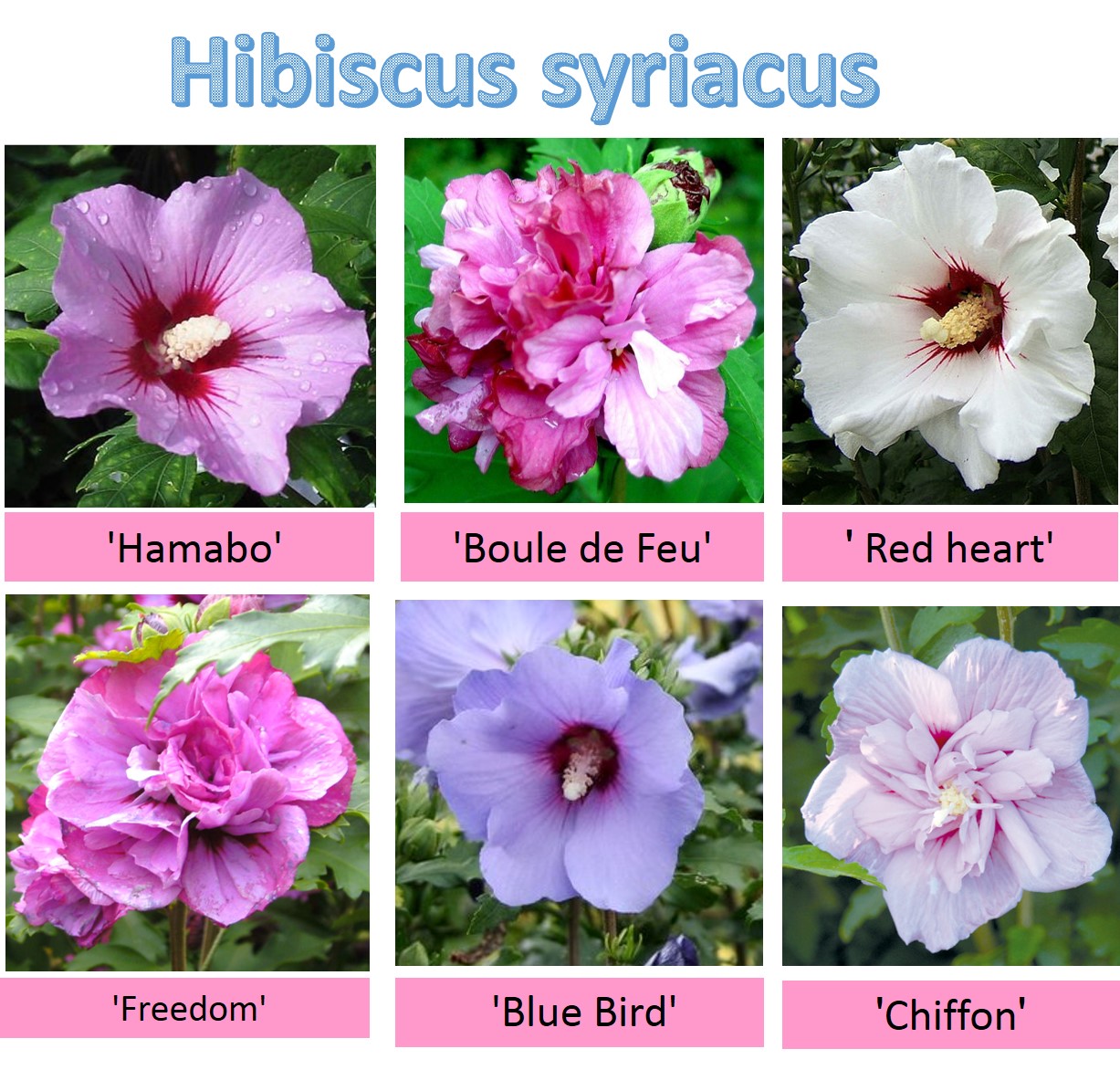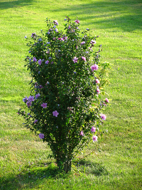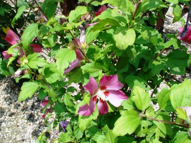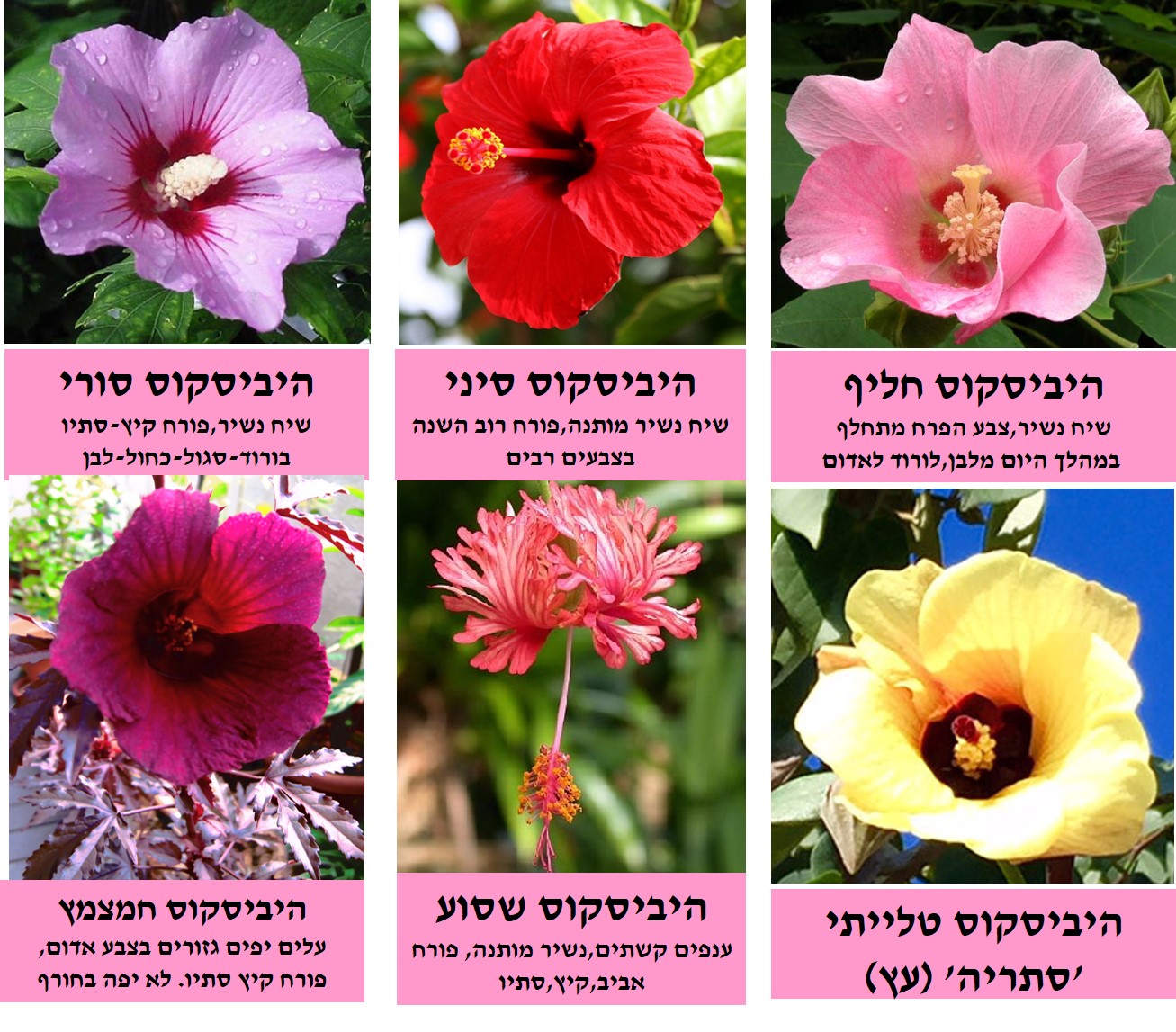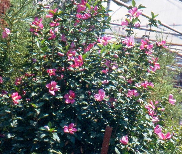 עץ קטן או שיח גבוה וצר. יכול להגיע לגובה של כ 3-4 מ' ולרוחב של כ1.5-2 מ'. נשיר חורף, פריחה שופעת ,ממושכת ובולטת בקיץ ובסתיו בגוונים כחול-סגול-ורוד-לבן, יש גם פרחים עם 2-3 גוונים באותו פרח..בארץ ובעולם טופחו עשרות זנים לכולם פרחים גדולים במיוחד, בולטים ויפים ריקים או מלאים. לפרח עלי כותרים גדולים , מהלוע יוצא עמוד עלי ארוך ועבה יחסית ,מצופה אבקנים. (כך ניתן להבדיל בינו לבין ההביסקוס הסיני -עמוד העלי של הביסקוס סיני ארוך כפליים ודק יותר). העלים בצבע ירוק כהה, תלת אונתיים, בצורת רומח, נאים גם הם. ניתן לעצבו על גזע בודד או מספר גזעים- מומלץ לגינות קטנות כשיח או עץ מוקד קטן, בשל צפיפות ויופי עליו ניתן לעצבו כגדר חיה גזומה או לא גזומה שאינה נותנת פרטיות בחורף. כשיח בודד מומלץ להבליטו על רקע קיר . ניתן לשתול במיכל גדול. רגיש לכנימות עלה . עמיד לקרה ולשרב.