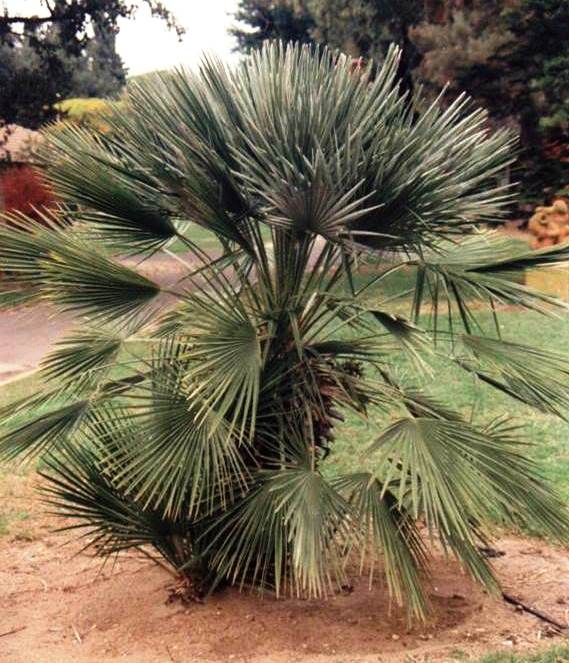 דקל רב גזעי היוצר גוש מרשים למראה ופיסולי. קוטר הגזעים 30 – 20 ס'מ ו כל אחד והם מכוסים בבסיסי עלים ובסיבים חומים צפופים. צומח לאט מאד. עלים דמויי מניפה – כפניים עם קוצים על הפטוטרות. הפריחה והפרי אינם משמעותיים. מהדקלים העמידים ביותר לקור. אפילו בשלג. עמיד לקו ראשון בחוף הים וחזק בכל התנאים. עמיד מאד ליובש. מצוין לגינה הקטנה והציבורית בשל הצימוח האיטי, ההתנקות העצמית מעלים יבשים והאחזקה הנמוכה.