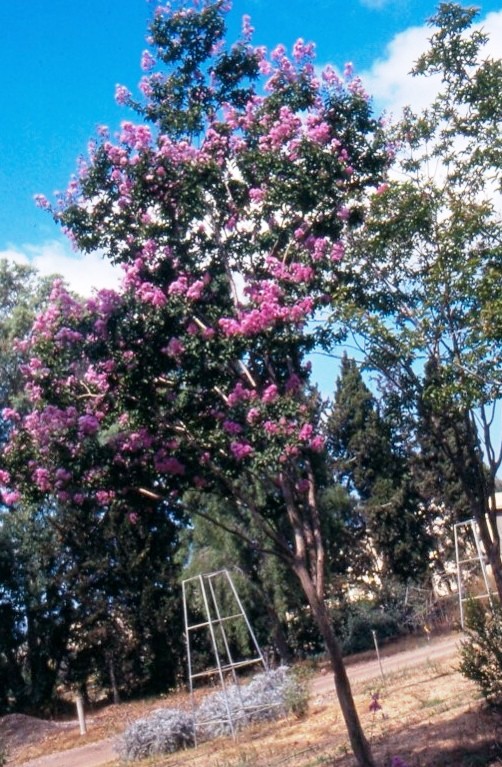 שיח גדול עץ קטן ונשיר . יש זן עצי וזן שיחי. לצמח הרבה מרכיבי יופי. גזע חלק אדמדם קישוטי המזכיר קצת קטלב מצוי או גואיבה תותית. עלים ביצתיים פשוטים בצבע ירוק. שלכת אדומה יפה מאד בתחילת החורף ולבלוב מאדים באביב. הפריחה בגלים גלים במשך כל הקיץ. פרחים קטנים בתפרחות גדולות בראשי הענפים. קיימים גוונים רבים בצבעי לבן אדום ורוד וסגול . הפרי מתפתח אחרי הפריחה הוא ניכר לעין אך אינו קישוטי במיוחד. הצמח רגיש לפטריית הקימחון. כיום קיימים זנים עמידים אבל באזורים יבשים מאד גם הם יתקפו. צמח נוח לגידול צנוע המשמש היום כעץ רחוב קטן וקישוטי. כמובן מתאים מאד לגינה הפרטית. מתאים לכל אזורי הארץ וזקוק להשקיה סדירה אם רוצים פריחה שופעת.