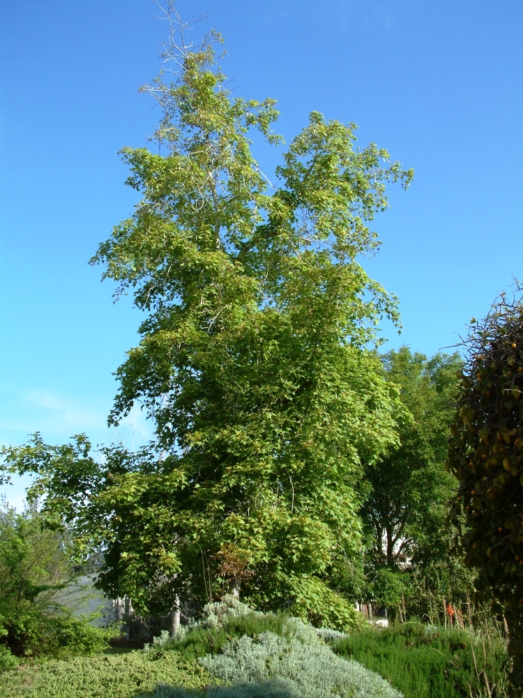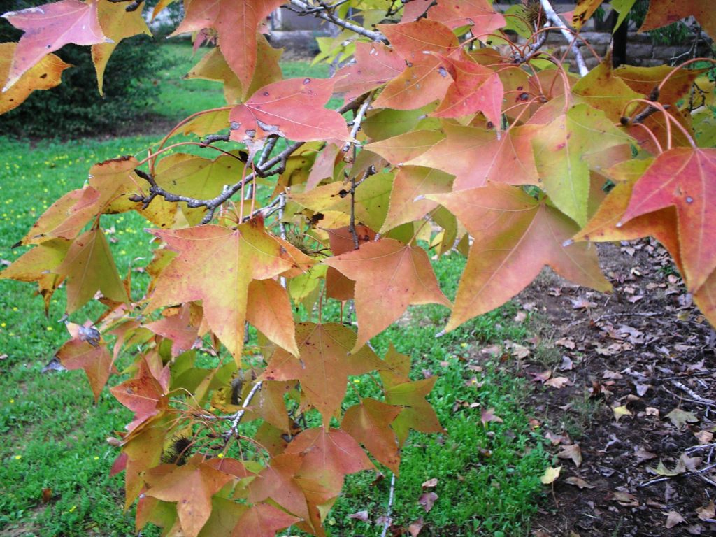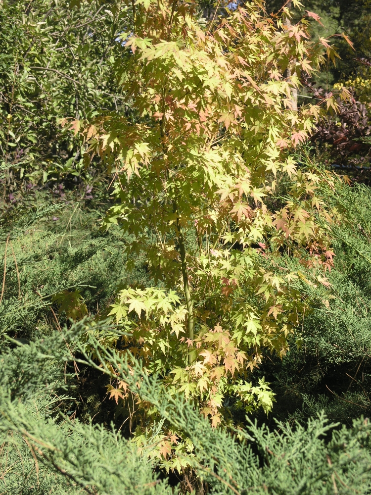 שלכת אדומה, עץ בגודל בינוני, עלים יפים גזורים ל3-5 אונות.