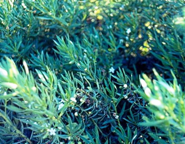 שיח שרוע ירוק עד צפוף ומשתרש בקלות. מהווה כיסוי קרקע גבוה. עלים עבים די בשרניים סרגליים קטנים בצבע ירוק חי. הפרחים קטנים לבנים ביעילות נמוכה בקיץ. צמח חזק מאד לקו שני של חוף ים. עמיד ליובש אינו מפונק יכול לכסות שטחים גדולים אופקיים או אנכיים ומונע סחף קרקע. מונע נביטת עשבים מתחתיו אחרי התבססות. מתאים לכל אזורי הארץ בשמש מלאה או חצי צל.